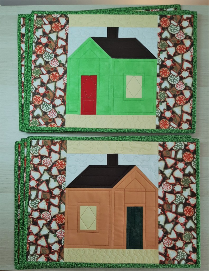 Motif maisons 3 de couleur vert menthe vif, et 3 de couleur pain d’épices (3).